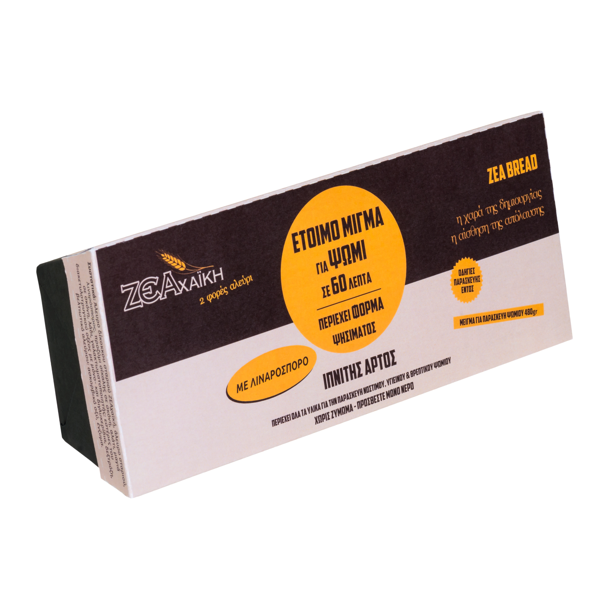 Συστατικά: Αλεύρι δίκοκκου σταριού ΖΕΑχαϊκή, άλευρο σταριού, λιναρόσπορος, προζύμι σίκαλης σε σκόνη, αλάτι, μαγιά σε σκόνη, λάδι, γαλακτωματοποιητής: εστέρες του διακετυλοτρυγικού οξέος με μόνο- και διγλυκερίδια, δεξτρόζη, βελτιωτικό αλεύρου: ασκορβικό οξύ, ένζυμα.